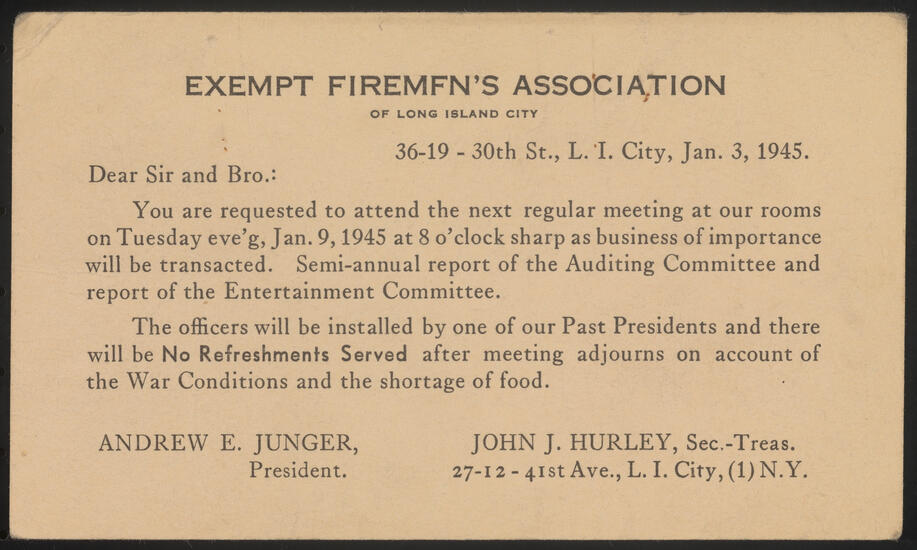 [Regular meeting of the Exempt Firemen's Association of Long Island City.]