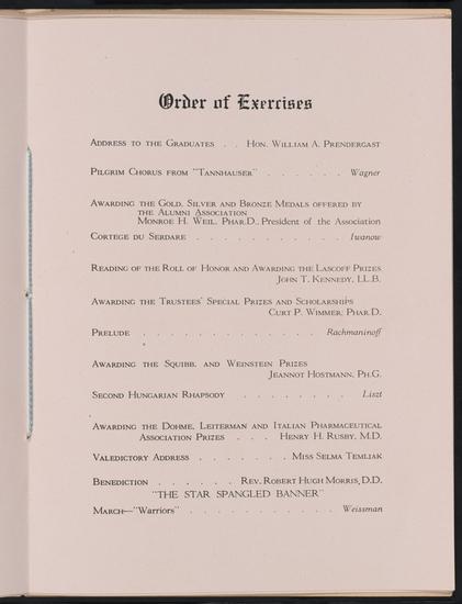 Columbia University College of Pharmacy at the City of New York Eighty Eighth Annual Commencement