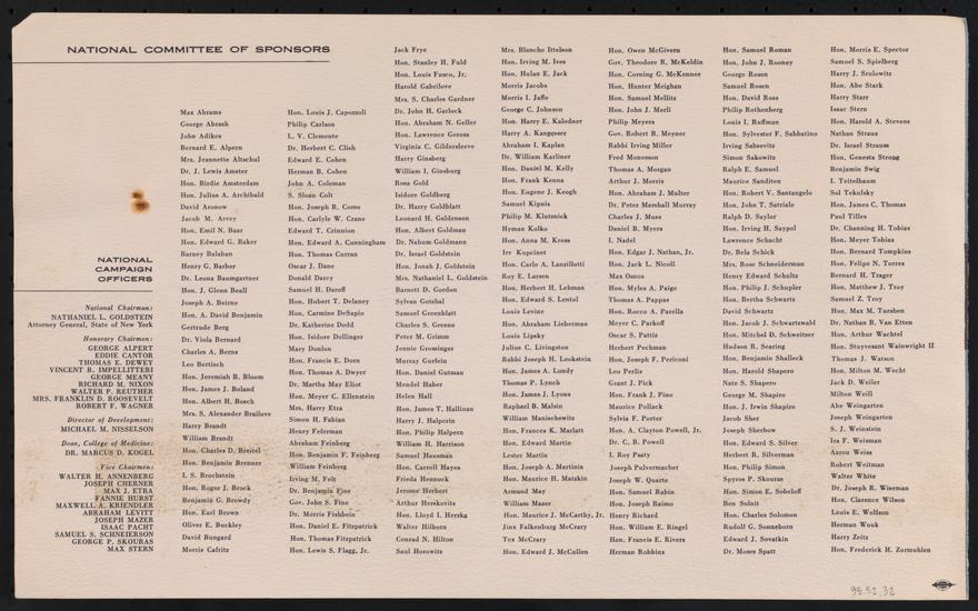 Dinner on the occasion of the Laying of the Cornerstone for the Albert Einstein College of Medicine of Yeshiva University