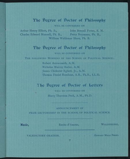 The One Hundred and Thirtieth Commencement of Columbia College, Schools of Arts, Mines and Political Science