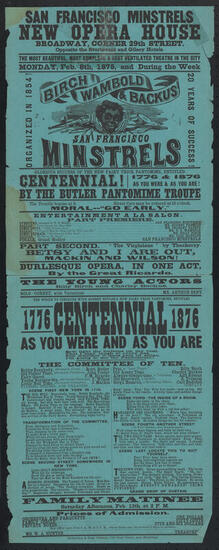Eighteenth season of Bryant's Minstrels. Friday evening, January 8, 1874, the felicity will eventuate at 8 o'clock