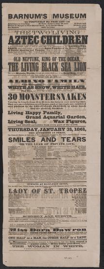 Barnum's American Museum. Thursday, January 31, 1861. Great increase of attractions! Old Adams' California menagerie and others