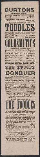 Friday, March 25, 1864, benefit of Mr. George Holland, with Goldsmith's favorite comedy of "She Stoops to Conquer"