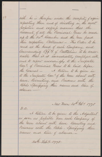 Order book of Oliver De Lancey, December 31, 1777-February 14, 1778, copied by Edward Floyd De Lancey in 1880