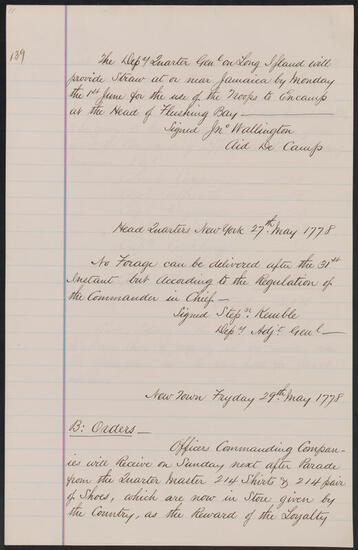 Order book of Oliver De Lancey, May 15, 1778-May 27, 1778, copied by Edward Floyd De Lancey in 1880