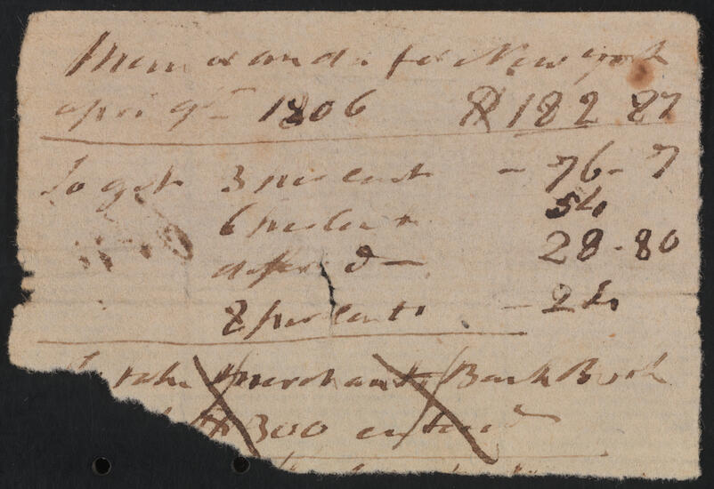 Memorandum for New York by John Peter De Lancey, January, 1805