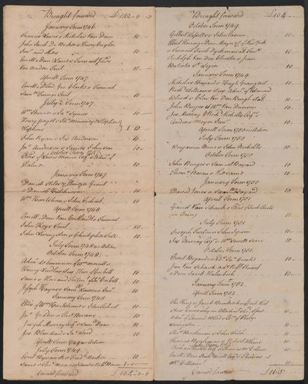 Account by Joseph Murray of James De Lancey's docket, October 1733-1756