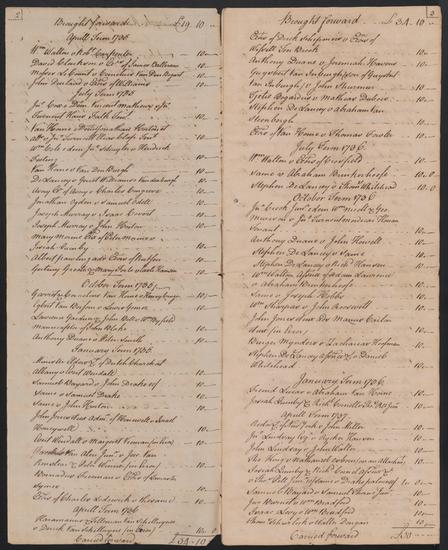 Account by Joseph Murray of James De Lancey's docket, October 1733-1756