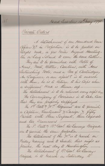 Order book of Oliver De Lancey, February 20, 1778-March 13, 1778, copied by Edward Floyd De Lancey in 1880