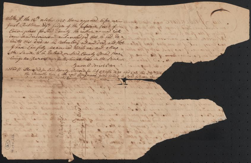 Indenture between Johannis Hardenbergh, Johannes William Smith, Albert Boom and Tounis Hough and Baron Lighthart, and Richard Bradley of New York City, April 8, 173a7