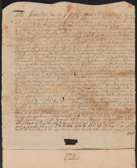 Indenture between Johannis Hardenbergh, Johannes William Smith, Albert Boom and Tounis Hough and Baron Lighthart, and Richard Bradley of New York City, April 8, 173a7