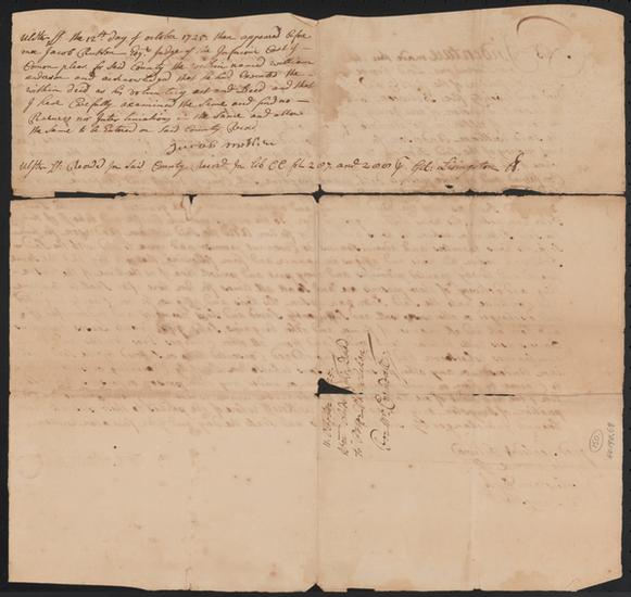 Portion of indenture between William Anderson of Hackensack, New Jersey and unknown party, October 11, 1725