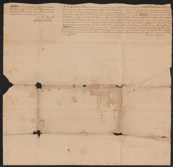 Indenture between Johannis Hardenbergh, Johannes William Smith, Albert Boom and Tounis Hough and Baron Lighthart, and Richard Bradley of New York City, April 8, 173a7