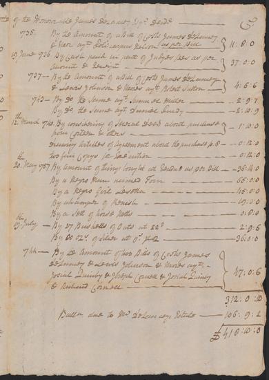 Account reconciliation between Joseph Murray and James De Lancey, June 17, 1736
