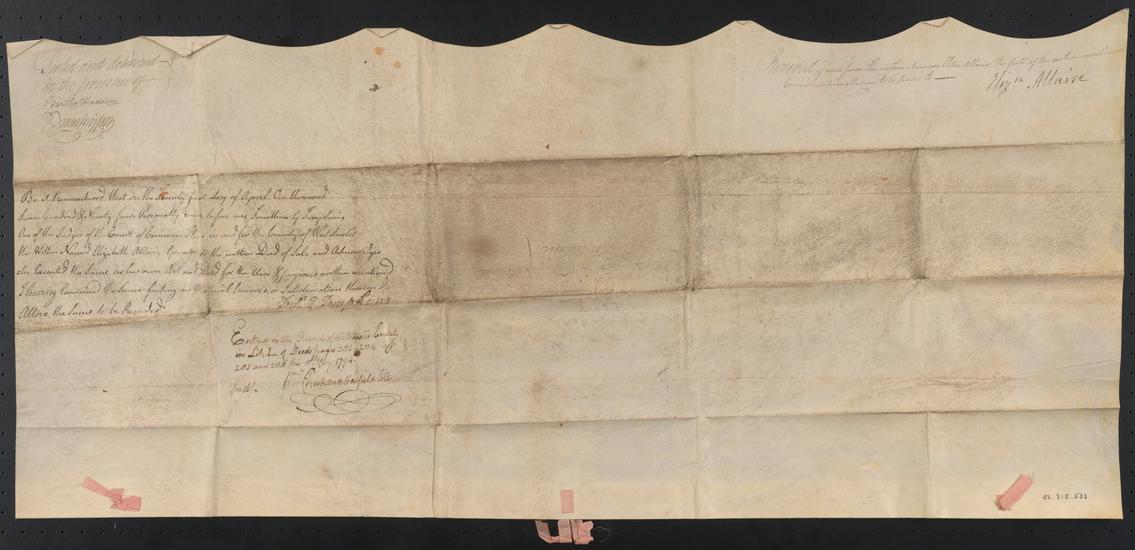 Undated portion of deeds of the farm purchased of Peter Allaire