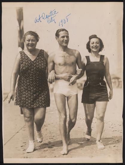 [Sophie Tucker and two unidentified men in Atlantic City.]