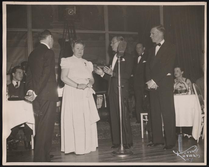 [Sophie Tucker at Versailles Cafe for the Mirror-Ted Friend award presentation.]