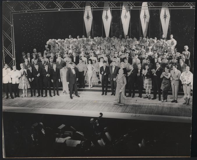 [Queen Elizabeth, Sophie Tucker and Bob Hope at a Royal Command Performance.]