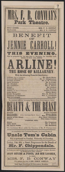 "As You Like It", Monday and Wednesday, September 22 and 24, 1873, at F. B. Conway's Brooklyn Theatre