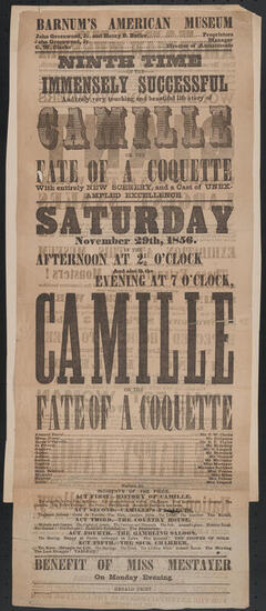 On Saturday evening, April 26, 1856, will be presented the grand romantic and moral drama in five acts, "The Marble Heart"