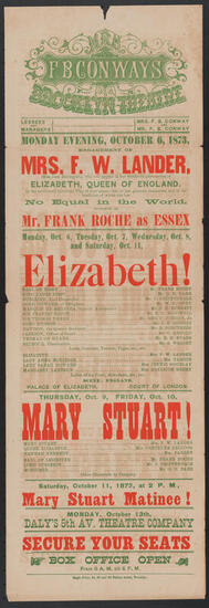 "As You Like It", Monday and Wednesday, September 22 and 24, 1873 at F. B. Conway's Brooklyn Theatre