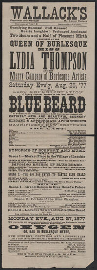 Wednesday evening, November 21, 1877, and on Thursday, November 29, a special Thanksgiving matinee, a new fairy musical extravaganza, entitled "Piff-Paff; or, The Magic Armory"