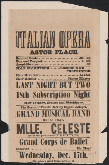 Wednesday evening, August 23, joint benefit of Max Maretzek and Mme. Bertucca Maretzek, the grand opera of "Lucrezia Borgia"