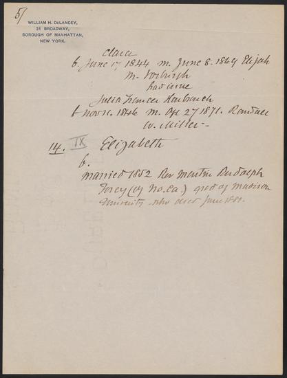 Undated De Lancey family genealogy compiled by William H. De Lancey