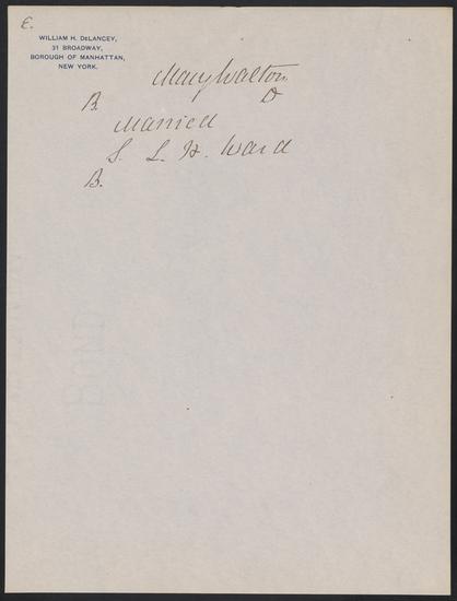 Undated De Lancey family genealogy compiled by William H. De Lancey