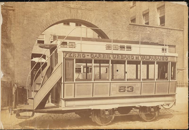 Double-decker Cars [Ferro-Carril Urbano de Valparaiso No. 53 streetcar with knifeboard seating on upper deck and exposed driver's seat.]