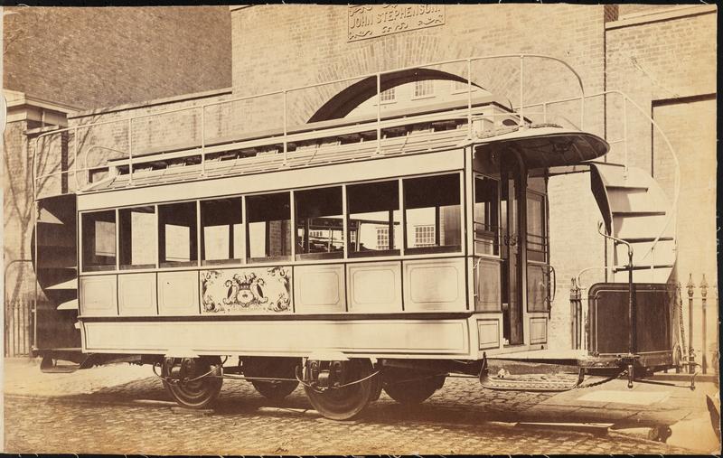 Double-decker Cars [Hull Street Tramway No. 20 streetcar with knifeboard seating on upper deck.]