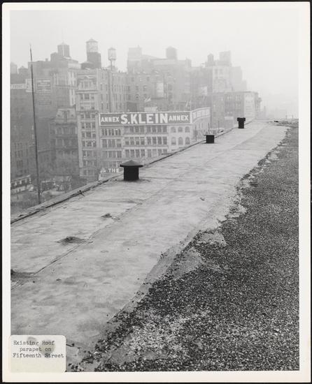 New Construction of 15th Street roof parapet [Reconstruction of the facade of the old Tiffany Building, 15 Union Square West.]