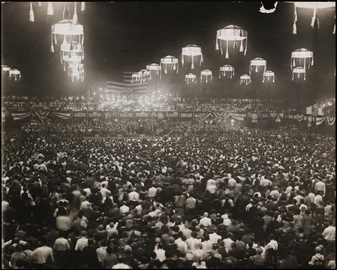 [Al Smith giving his speech of acceptance of the presidential nomination.]
