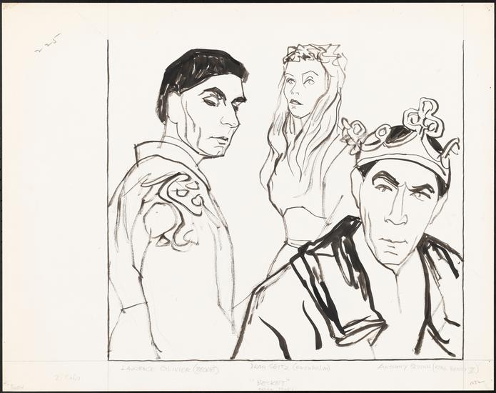 [Anthony Quinn as Henry II and Laurence Olivier as Thomas Becket in "Becket".]