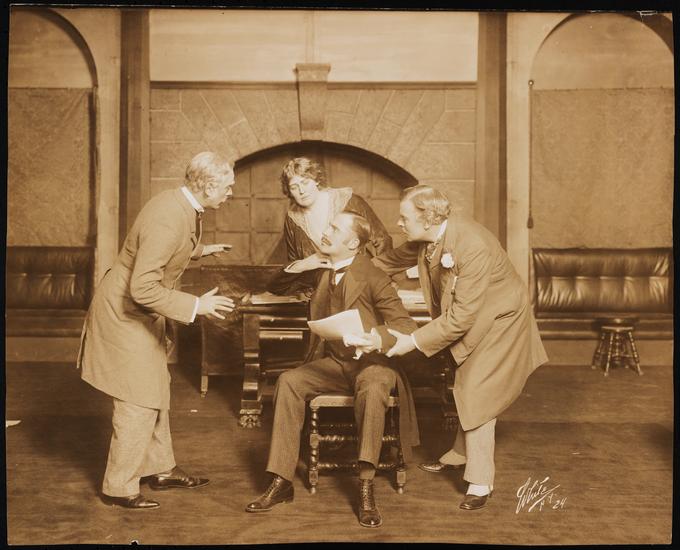 [Edward Crandall as Philip Mancini, Mary Boland as Rosalie West, and Reginald Mason as Malcolm West in "Heavy Traffic".]