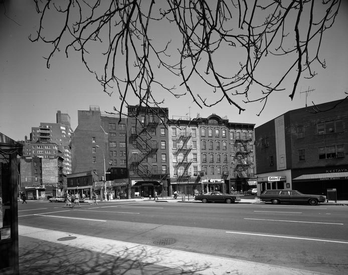 [Looking across Seventh Avenue South to 283, 285, 287, and 289 Bleecker Street.]