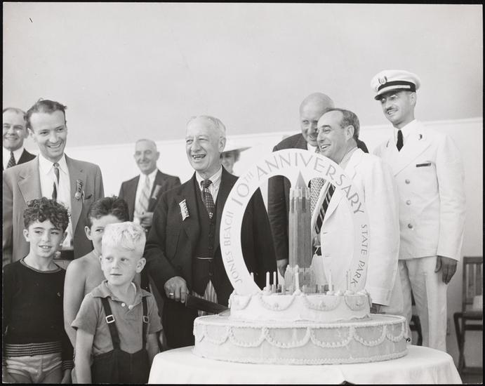 [Al Smith and Robert Moses at the 10th Anniversay of Jones Beach State Park.]