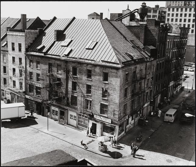 [Looking northwest across the rooftops of buildings on Beekman Street.]