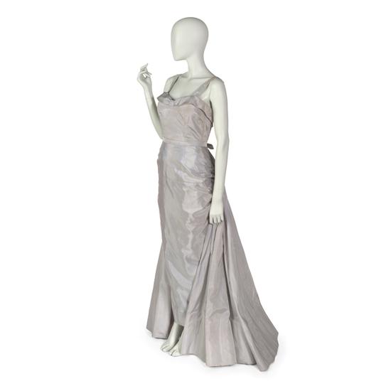 Evening ensemble comprising evening dress and coat in ice blue silk gazar