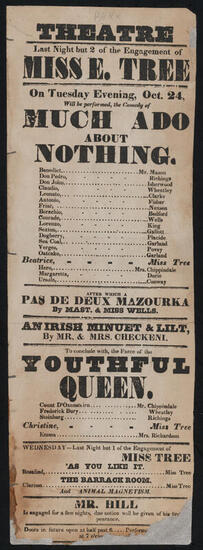 This evening, Tuesday, September 26, 1854, will be performed Shakespeare's great comedy of "Much Ado About Nothing"