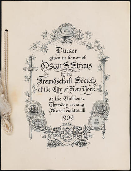 Banquet given in honour of Nathan Straus by citizens of the City of New York