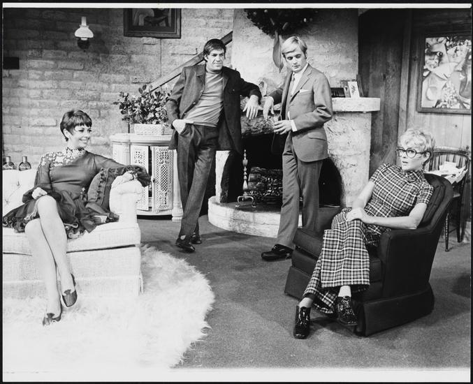 [David McCallum as Julian, Gwyda DonHowe as Sharon, Monica Evans as Candida and Don Francks as Theo in "The Flip Side".]