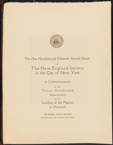 New England Society in the City of New York One hundred and sixth Annual Festival