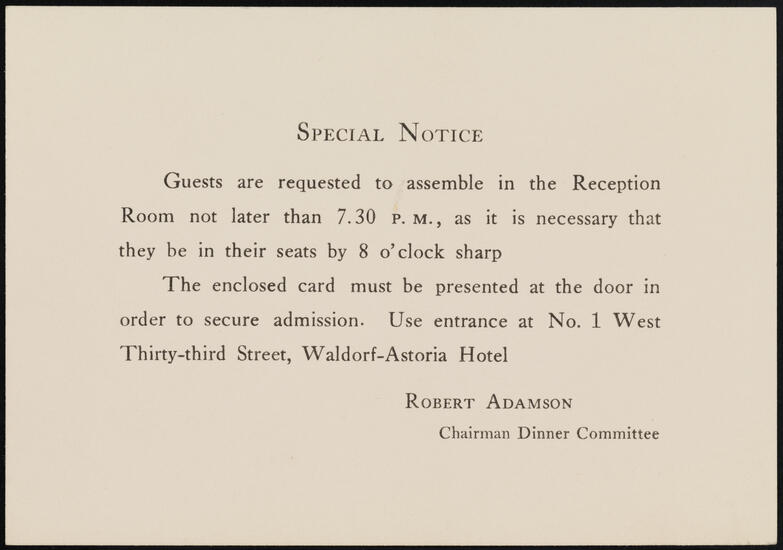 To Meet the Members of the Imperial Japanese Commmission the Mayor of the City of New York Requests the Honor of Your Presence at a Dinner