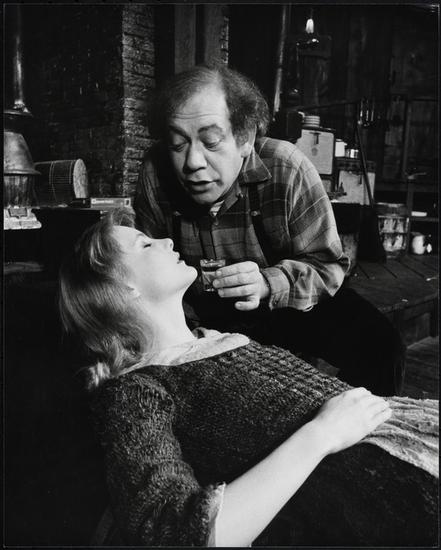 [Jules Feiffer and the cast of "Knock Knock".]