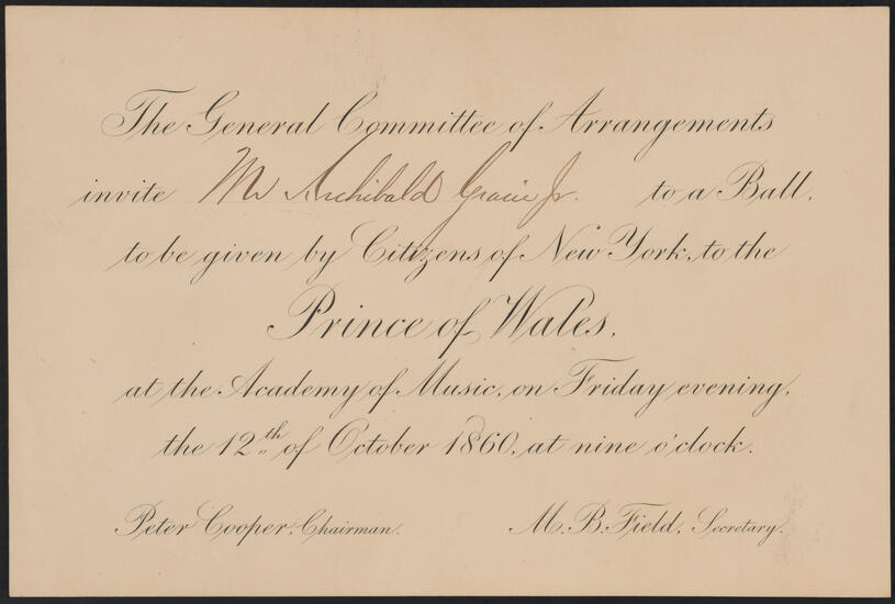 The Ball in Honor of the Prince of Wales [Allotment of tickets for members of the General Committee.]