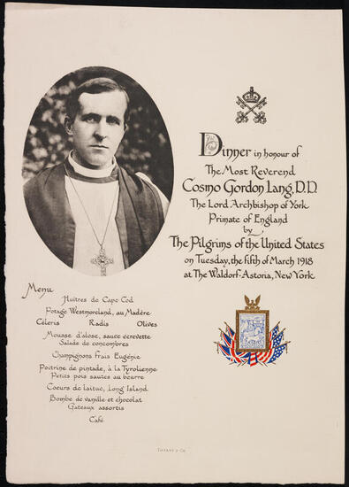 Dinner in Honour of His Grace the Lord Archbishop of Canterbury by the Pilgrims of the United States