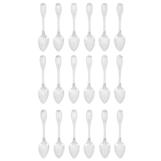 One of a set of eighteen teaspoons with pointed egg-shaped bowl and straight handle with rounded end in Tuscan pattern. Inscription: Engraved on handle reverse: ESAMB. Mark: Marked on handle reverse: BALL TOMPKINS & BLACK / PATENT 1846 / [one or two illegible marks near bowl.]