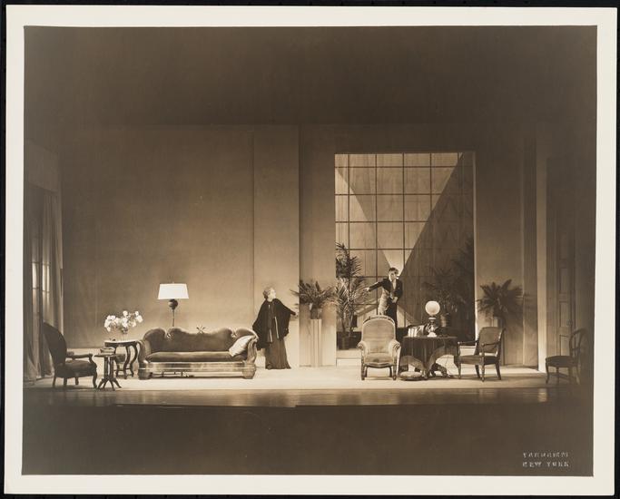 [Alla Nazimova as Mrs. Helen Alving and McKay Morris as Pastor Manders in "Ghosts".]