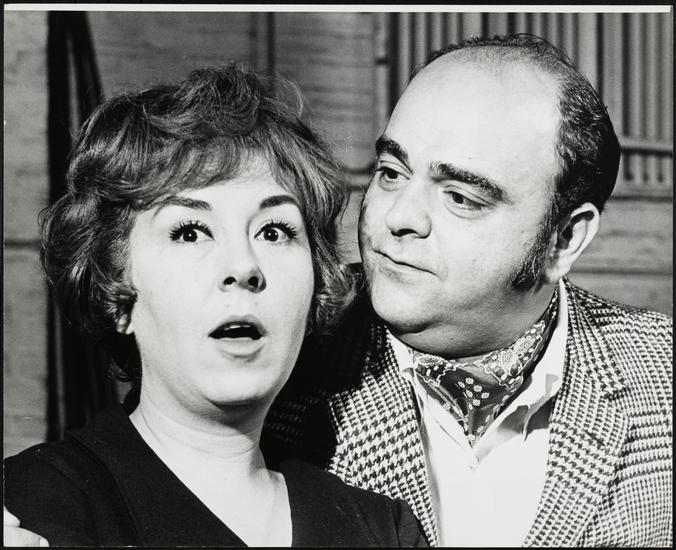 [Doris Roberts as Jeanette Fisher and Dom DeLuise as Barney Cashman in "Last of the Red Hot Lovers".]